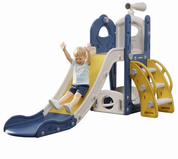 2 az 1-ben Gyerek Csúszda Létrával és Kosárlabda Palánkkal - Tökéletes Szórakozás Otthon és a Kertben! ?? Ez a tartós és összecsukható csúszda nem csak a csúszás élményét nyújtja, hanem egy kosárlabda palánkot és egy távcsövet is tartalmaz, így garantált a szórakozás! Ideális választás a kertbe, a gyerekszobába vagy akár a járókába is. Főbb Jellemzők:2 az 1-ben kialakítás: Csúszda létrával és kosárpalánkkal. Biztonságos: Biztonsági szélekkel és csúszásgátló lábakkal ellátva. Sokoldalú: Használható otthon és a kertben is. Extra szórakozás: Tartalmaz egy kosárpalánkot és egy távcsövet. Könnyen tárolható: Összecsukható kialakítás. Ez a csúszda nem csak szórakoztató, de fejleszti a gyerekek motoros készségeit és koordinációját is. A strapabíró anyagoknak köszönhetően hosszú éveken át szolgálja majd a család apraját-nagyját. A könnyű összeszerelésnek köszönhetően pillanatok alatt felállítható, így a játék azonnal kezdődhet!