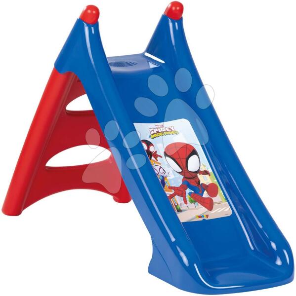 Csúszda nedvesítéssel XS Slide  a francia Smoby vállalat műhelyéből egy praktikus csúszda gyerekek, de főleg kisfiúk részére már 2 éves kortól. Erős szerkezettel és 90 cm hosszú csúszásfelülettel rendelkezik. Erős és tartós műanyagból készült, mely kellemesen bársonyos élményt nyújt tapintásra. Az élei lágyan lekerekítettek. Kompakt csúszdát Spidey ábrája díszíti, már az első pillantásra leveszi a kicsiket a lábaikról, bel- és kültéren egyaránt kihasználható. A gyermek biztonságáról a csúszásmentes lépcsőzet gondoskodik, csupán 75 cm magasságának köszönhetően a legkisebbek is bátran lecsusszanhatnak róla. Csúszda locsolócsőre is köthető, így akár tobogánként is kihasználható, mely a forró nyári napokon kellemes hűsítő felfrissülést nyújt majd.  Méretei a csúszdának 125*50*75 cm, teherbírása 20 kg. Színét UV szűrő védi a káros napsugarakkal szemben, ezért évek múltán is újként fog a csúszda hatni. Nagyon szép színkombinációnak és külcsínnek köszönhetően minden udvart és kertet szebbé varázsol. Csúszdázás közben fejlődik a fantázia és képzelőerő, illetve a mozgási képességek. Csúszda tavasztól őszig kihasználható, a csöppségek nagy kedvence lesz. Összeszerelése és tisztítása egyszerű.  Neves francia Smoby vállalat minőségi műanyag gyerekjátékok gyártásával foglalkozik már évtizedek óta. A Smoby játékok műanyaga erős, tartós, de egyben lágy, selymes és bársonyos a tapintásra. Minden Smoby termék éle lekerekített , hogy gyermekeit játék közben elkerülje az esetleges sérülés veszélye. Smoby márka garancia a francia minőségre, biztonságra és egyediségre. Jellemzői